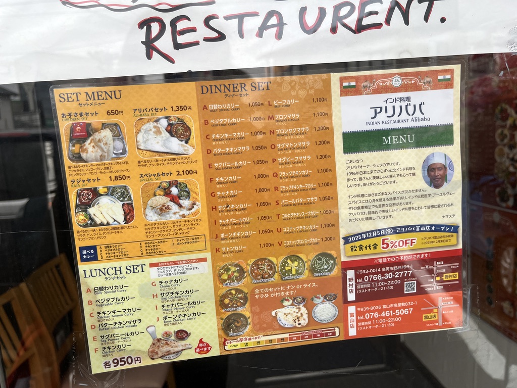 【富山市】高岡の人気店「インドカレー アリババ」が富山市に新店舗オープン 1996年から続く本場の味がより身近に