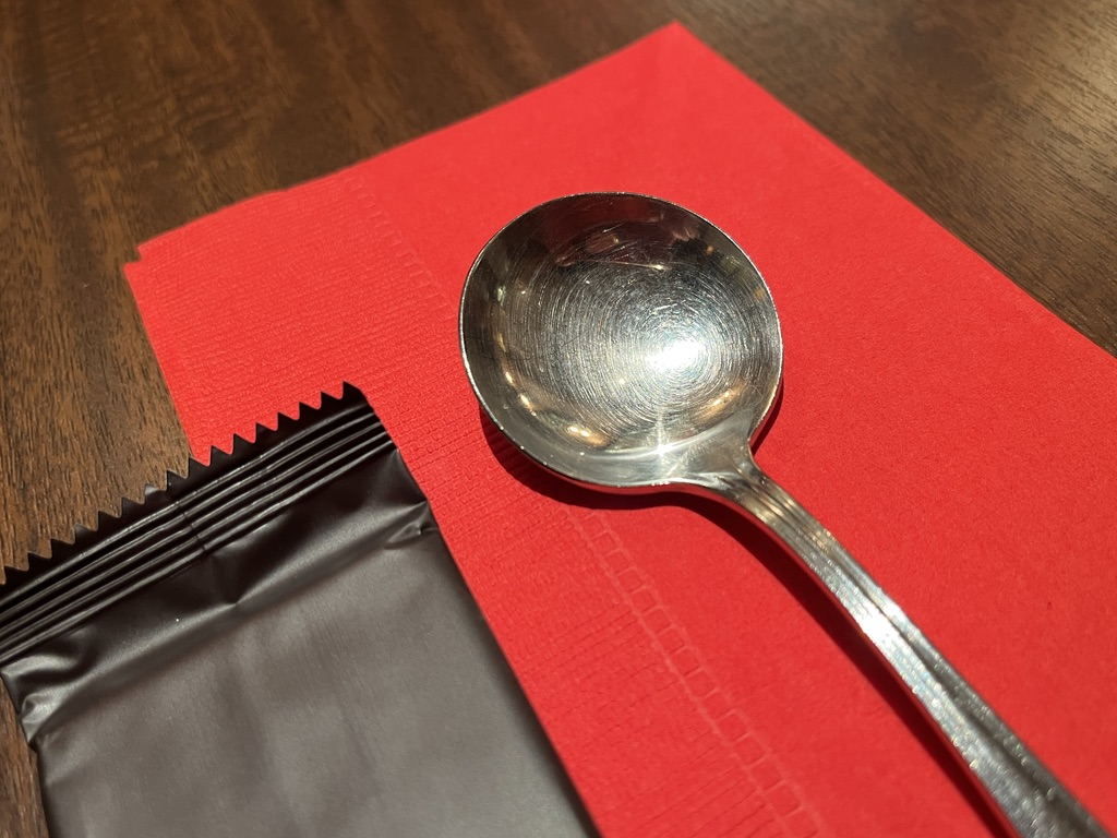 真っ赤なペーパーナプキンも、大重亭らしさです。料理だけでなく、印象に残るのが真っ赤なペーパーナプキンを膝に広げた瞬間、自然と気持ちが引き締まり、「今日は大重亭の洋食をしっかり味わうぞ。」という気分になります。こうした細やかな演出も、大重亭ならではの魅力ではないでしょうか。