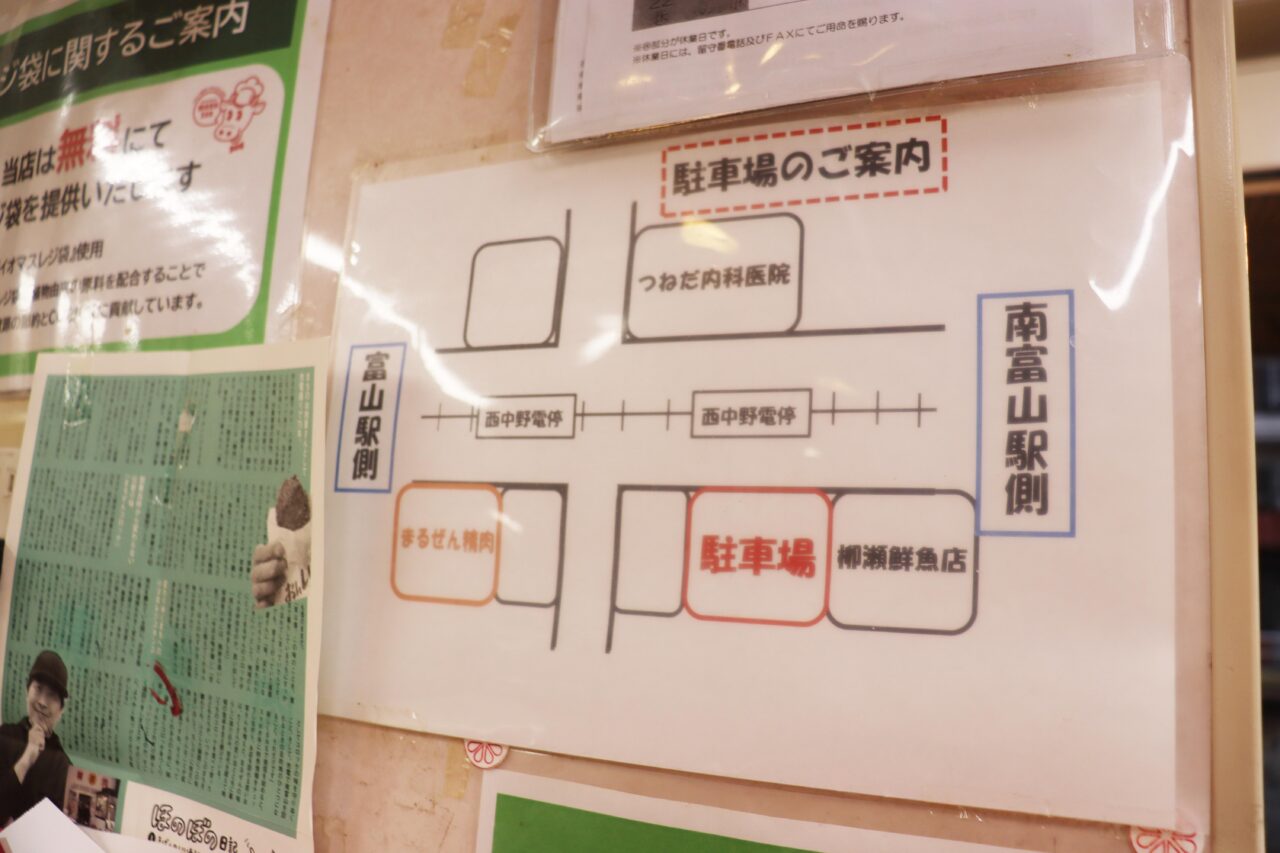 富山地方鉄道富山軌道線本線西中野駅下車すぐ、無料駐車場もある立地なので安心して来店できますね。