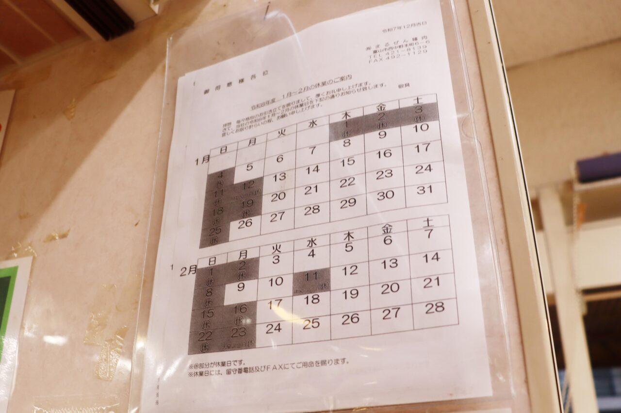 定休日はこのようになっていますよ。