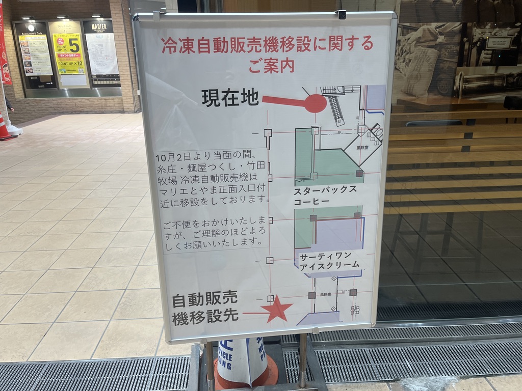 【富山市】富山駅前で小さな変化 エスタとマリエとやまを結んでいた短いエスカレーター撤去工事が完了し、人気のお土産自動販売機が元の場所に戻りました。