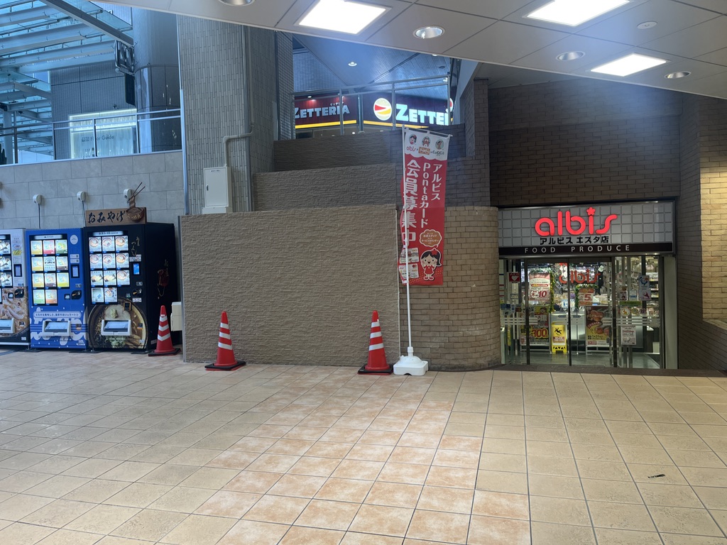 アルビスエスタ店の入口が見えやすく、エスカレーターがなくなったことで、アルビスエスタ店の1階入口が、富山駅側からはっきりと確認できるようになりました。これまで存在に気づきにくかったという方にとっては、分かりやすくなったと感じられる変化です。