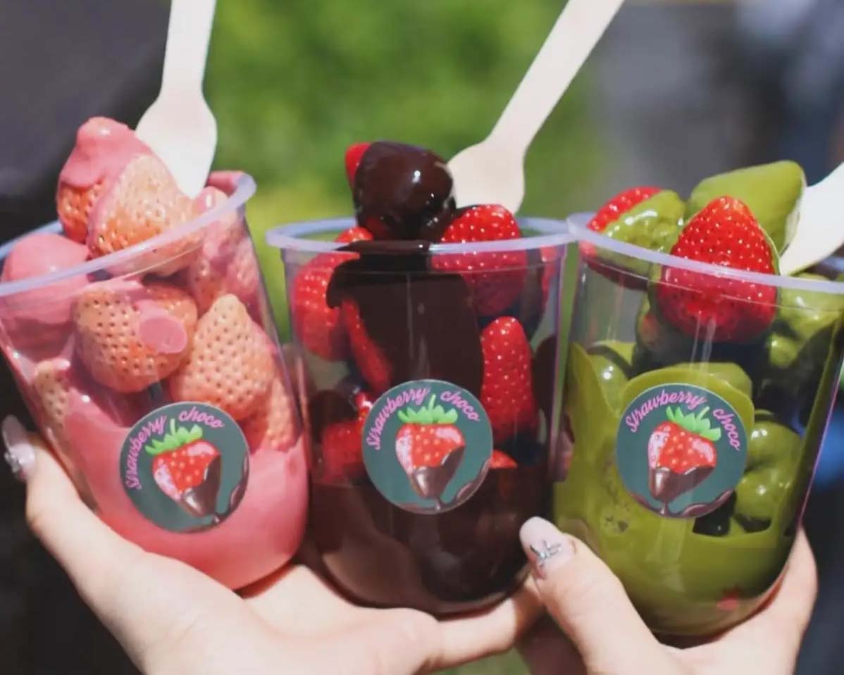 マルート店では、人気のダークチョコをはじめ、ホワイトチョコ、抹茶チョコ、いちごチョコの4種類を販売予定。カップいっぱいに入った苺にチョコをかけるライブ感のある提供スタイルも注目ポイントです。